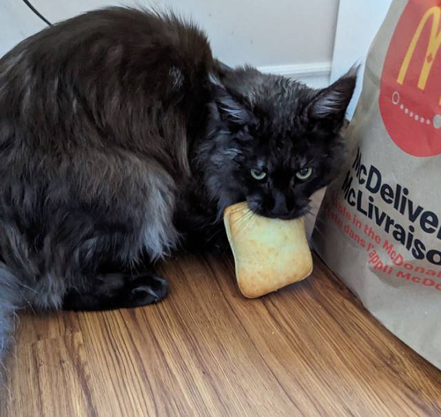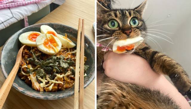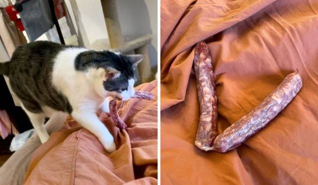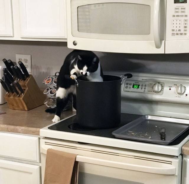 К счастью, иногда хозяевам всё же удаётся не дать им совершить преступление, поймав с поличным. Например, однажды, вернувшись домой после долгого дня, я обнаружил своего кота, Мишку, зависшего на кухонном столе, где по неосторожности оставили открытой упаковку с печеньем.
